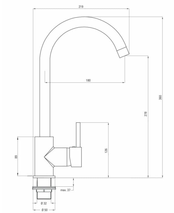 - Zasięg wylewki: 180 mm